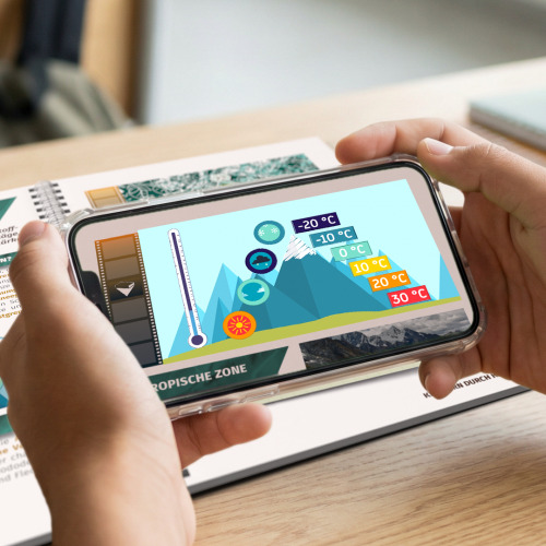 Nach dem Herunterladen und Drucken der Testseite können Sie auch zu Hause probieren wie die AR Elemente im Buch funktionieren. Folgen Sie hierzu die Beschreibung auf der Musterseite.