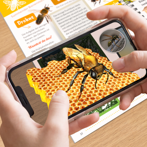 Nach dem Herunterladen und Drucken der Testseite können Sie auch zu Hause probieren wie die AR Elemente im Buch funktionieren. Folgen Sie hierzu die Beschreibung auf der Musterseite.